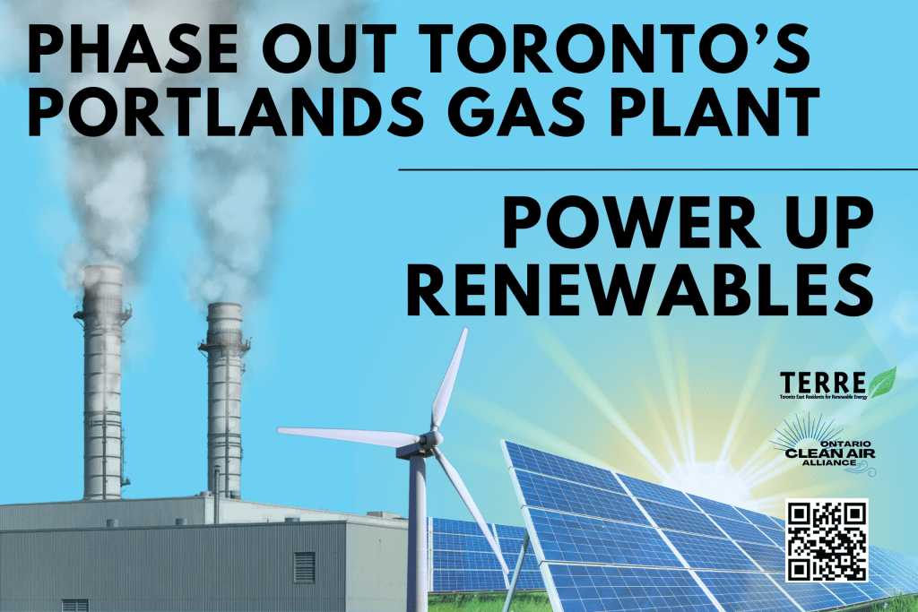 In the midst of the climate crisis, the Ford government is ramping up the use of gas electricity production across Ontario. Instead of investing in affordable and safe renewable energy, the Ontario government has already expanded the output capacity of the Portlands plant in order to rely on this ‘peaker’ plant as a base-load plant. In the summer of 2023, the plant ran 21 hours per day.